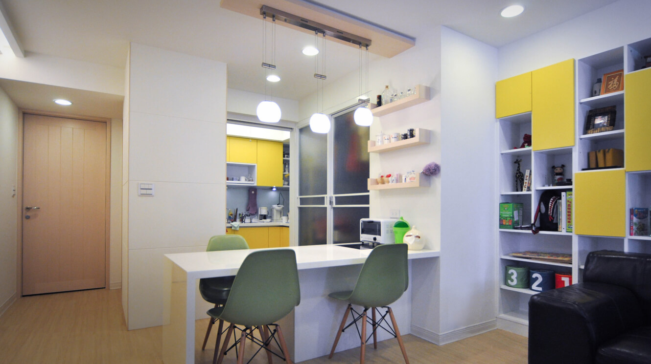 主要建材:半拋光石英磚、杜邦石、橡木、富美家美立方板